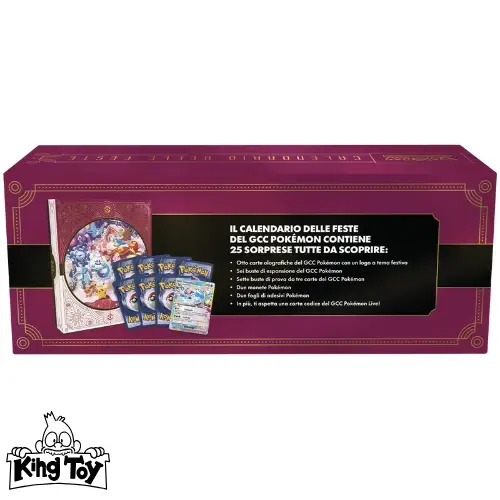 Il calendario delle feste del GCC Pokémon ti aspetta per festeggiare la stagione più gioiosa dell’anno con 25 giorni pieni di sorprese! Carte olografiche esclusive, buste di espansione e tanto altro… Insomma, ogni giorno troverai un tesoro targato Pokémon da aprire. Che tu voglia farti un regalo o condividere la gioia delle festività con qualcun altro, ciascuna casella di questo calendario riserva un momento speciale.